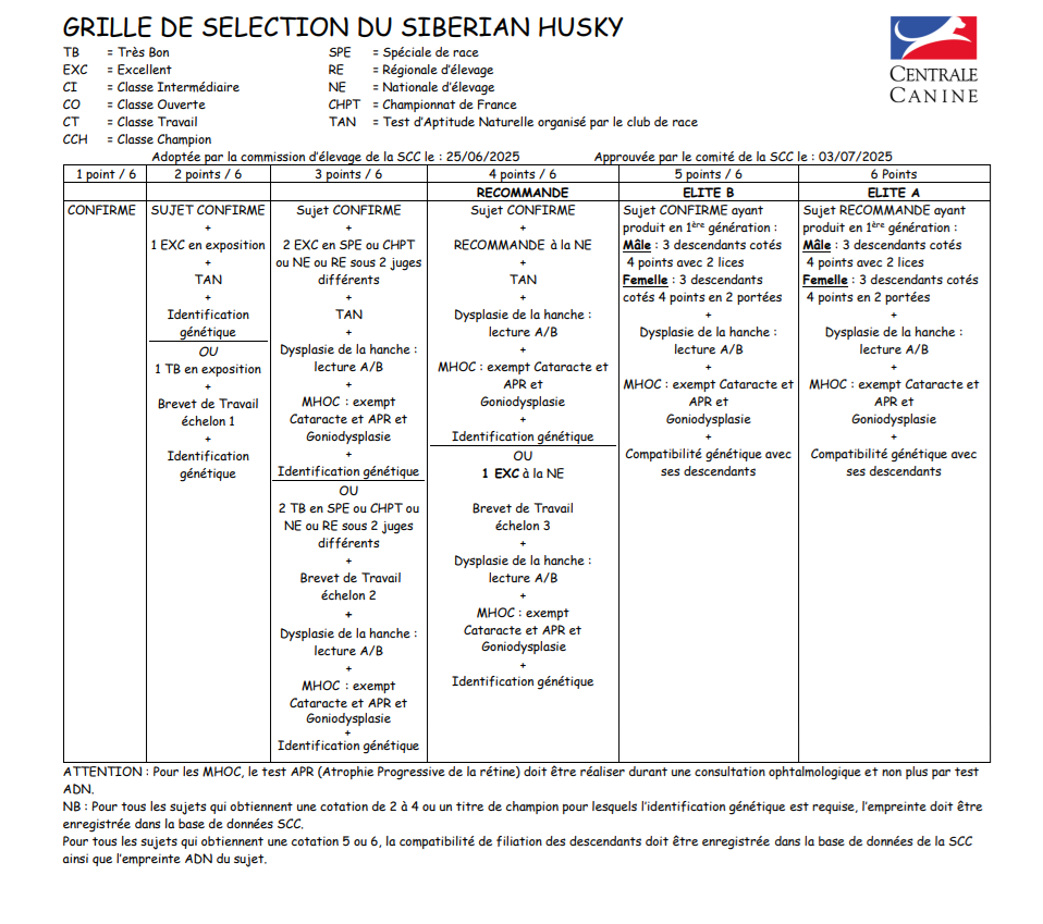 Standard du Siberian Husky